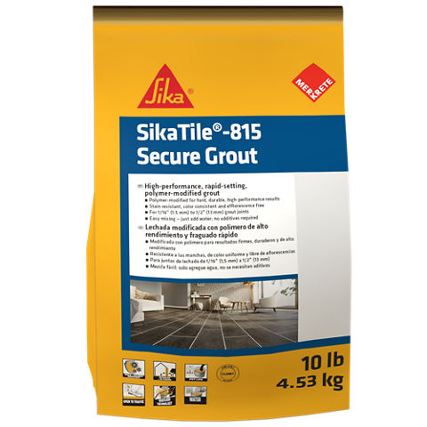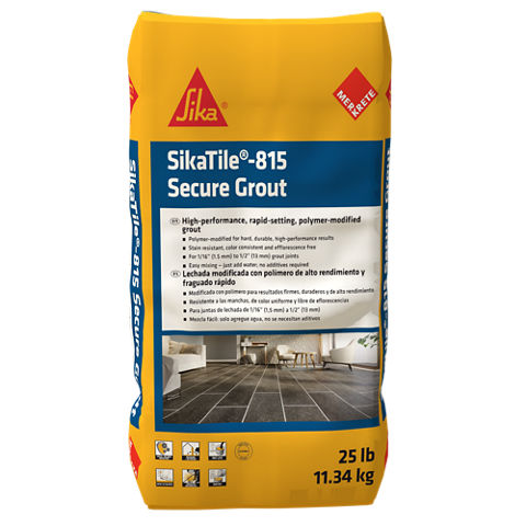 SikaTile®-815 Secure Grout is a premium, high-performance, fine aggregate, rapid-setting, polymer-modified, color consistent, and efflorescence-free grout. Specially formulated for grouting all types of ceramic and dimensional stone tiles on walls and floors, SikaTile®-815 Secure Grout is water-cleanable and easy to apply and used for joints from 1/16” (1.5 mm) to 1/2" (13 mm) in width, eliminating the need for different grout products. It features innovative Dustless Technology producing less dust than ordinary cement grouts and is designed to promote cleaner working conditions and reduce mess.