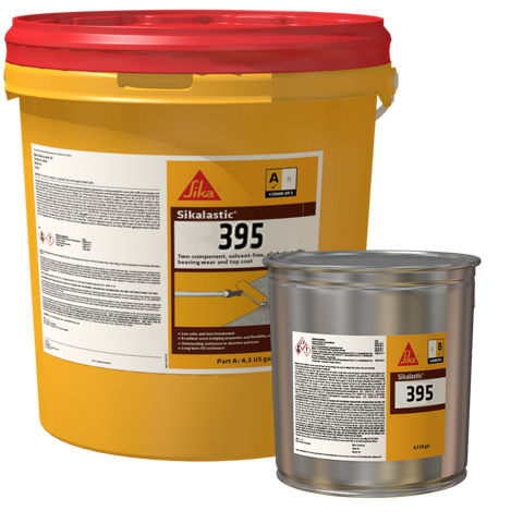 Sikalastic®-395 is a two-component, chemically cured, elastomeric aliphatic polyurethane coating intended for use as the traffic bearing wear and top coat over Sikalastic®-390 polyurethane waterproofing membrane and over Sikalastic®-391 polyurethane intermediate wear coat for pedestrian and vehicular traffic bearing applications, and as a UV resistant seal coat for Sikadur® 22-Lo Mod epoxy broadcast wear coat, and as a UV resistant seal coat for Sikadur® 22-Lo-Mod epoxy broadcast wear coat.