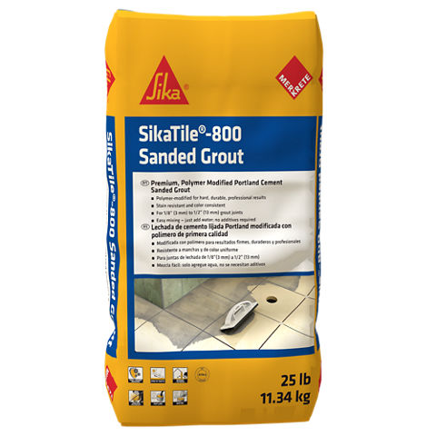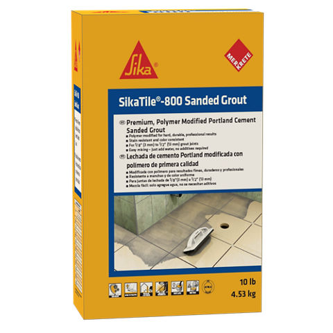 SikaTile®-800 Sanded Grout is a premium-grade, pre-blended, polymer-modified Portland cement tile grout that requires only the addition of water for mixing. For grout joints from 1/8" to 1/2" (3 mm to 13 mm), SikaTile®-800 Sanded Grout provides color consistent, hard and durable grout joints and features innovative Dustless Technology producing significantly less dust than ordinary cement grouts and is designed to promote cleaner working conditions and reduce mess.