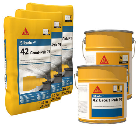 Sikadur®-42 Grout-Pak PT is a 3-component, 100 % solids, moisture-tolerant, epoxy anchorage protection system.