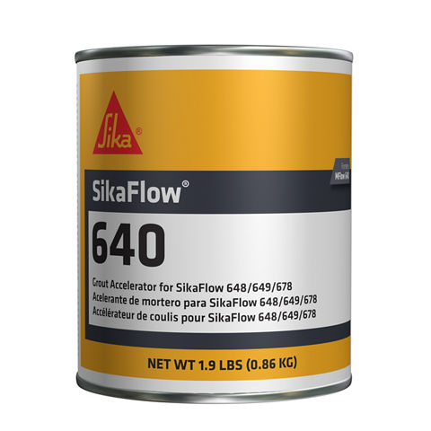 When SikaFlow®-640 is added to SIKAFLOW®-648, SIKAFLOW®-649 or SIKAFLOW®-678, it accelerates the cure rate at low temperatures. SikaFlow®-640 should be used in temperatures below 60 °F (16 °C).