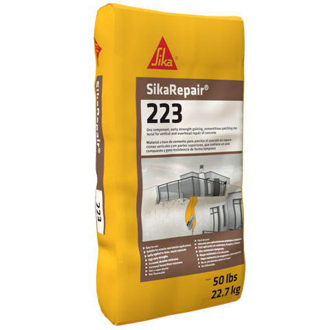 SikaRepair®-223 is a one-component, early strength gaining, cementitious, patching material for vertical and overhead repair of concrete.