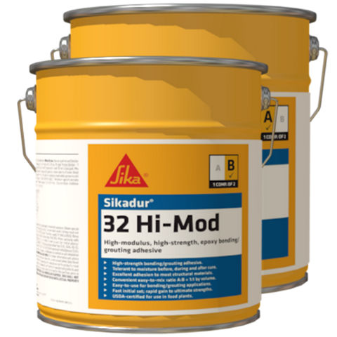 Sikadur®-32 Hi-Mod is a multi-purpose, 2-component, 100 % solids, moisture-tolerant structural epoxy adhesive. It conforms to the current ASTM C-881 Types I, II, and V, Grade 2, Class C and AASHTO M-235 specifications.