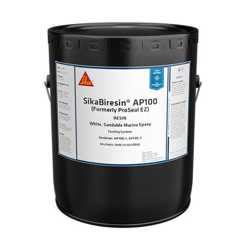 SikaBiresin® AP100 is a white epoxy coating system developed for use in the manufacture of composite and wooden boats. This two component resin system will fill in and seal surface fabric textures in FRP reinforced structures, leaving a porosity-free, sandable surface, replacing the conventional method of blending resin, hardener and thickening additives. Typically, one application applied with brush, roller or squeegee, is all that is required to fill in the texture or weave in cloth fabric. SikaBiresin® AP100 is resistant to water immersion, making it an ideal choice for sealing exterior and interior marine structures, above or below-the-waterline. SikaBiresin® AP100 is available with two hardener options: SikaBiresin® AP100-1 15-minute pot life, and SikaBiresin® AP100-3 61-minute pot life.