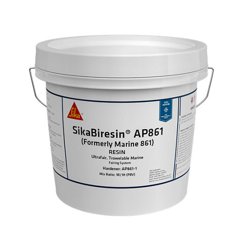 SikaBiresin® AP861 is a trowelable epoxy filler developed for fairing large surface imperfections on aluminum, steel, fiberglass or wooden marine vessels. The white resin and brown hardener, when mixed together, yields a smooth, creamy paste that can be easily applied up to 1” thickness, without sagging or shrinking during the curing process. When cured, this system features excellent sanding and finishing characteristics and accepts virtually all types of primers and paints.