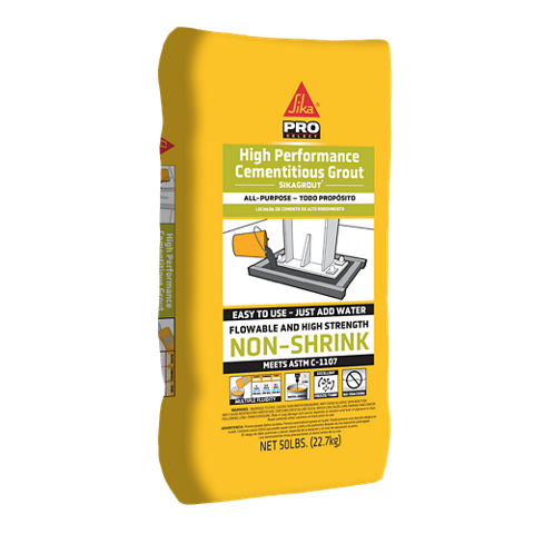 SikaGrout® is a non-shrink, cementitious grout with a unique 2-stage shrinkage compensating mechanism. It is non-metallic and contains no chloride. With a special blend of shrinkage-reducing and plasticizing/water-reducing agents, SikaGrout® compensates for shrinkage in both the plastic and hardened states. A structural grout, SikaGrout® provides the advantage of multiple fluidity with a single component.