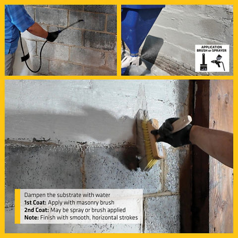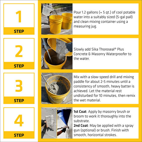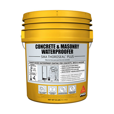 Sika Thoroseal® Plus Concrete & Masonry Waterproofer is a dry polymer-modified cement-based coating used for sealing and protecting concrete and masonry substrates against water dampness and seepage with a long lasting, semi-smooth gray waterproofing finish.