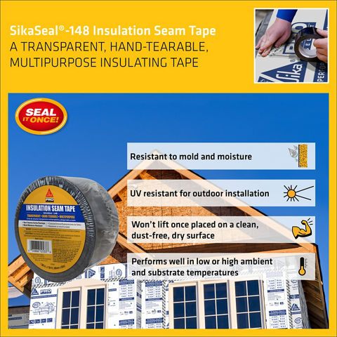 SikaSeal®-148 Insulation Seam Tape is a clear film, acrylic adhesive tape used for various building envelope applications.