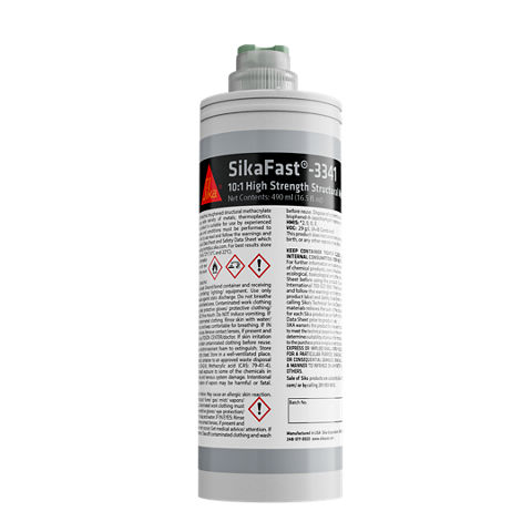 SikaFast®-3341 is an extended open time, 10:1 ratio 2-component adhesive based on methyl methacrylate (MMA) polymer technology. Uncured SikaFast®-3341 is a thixotropic, non-sagging paste which allows an easy and precise application.